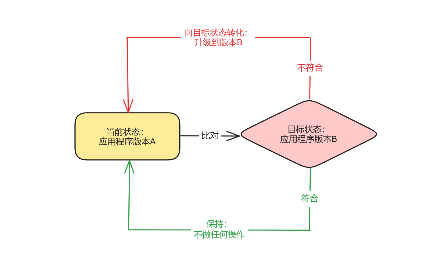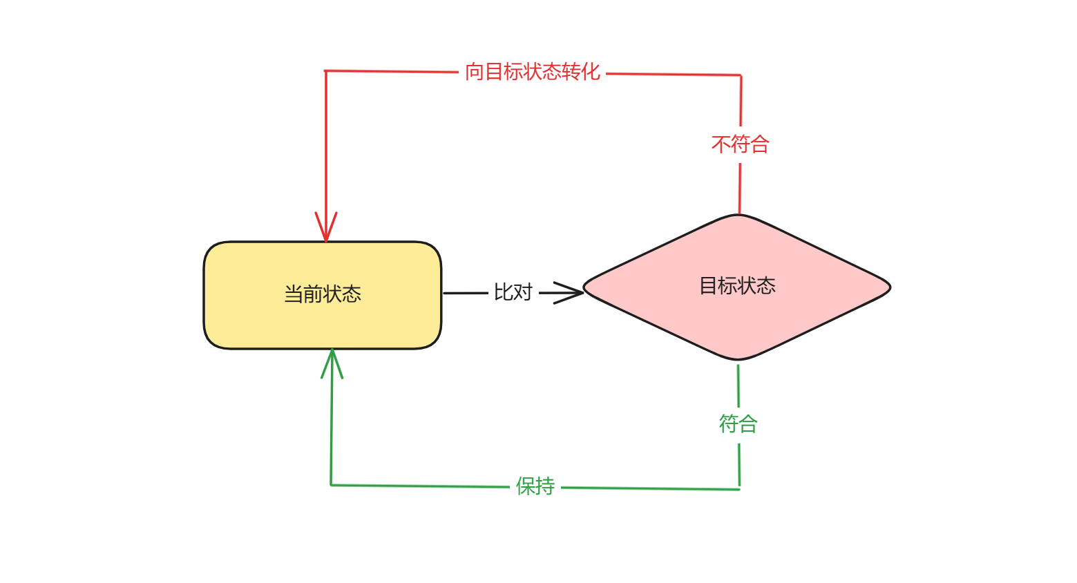我们不难看出,面向终态的关键就在于让控制逻辑感知到某种状态(现状),然后根据感知到的状态进行针对性操作,最终达成某个目标状态(终态),而目标状态也不是一成不变的,所以整个系统往往处于一种动态平衡的状态。
